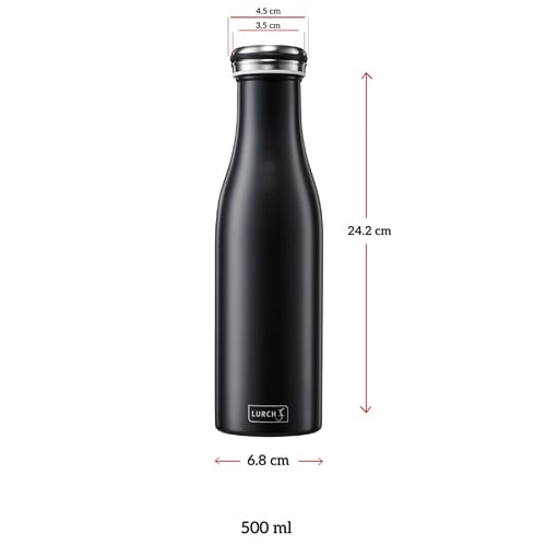 Lurch 500 ml Paslanmaz Çelik Termoslarımızın çift duvarlı yapısı, en kaliteli 18/8 304 paslanmaz çelikten yapılmıştır ve birbirine geçen iki kaptan oluşur. Bu tasarımın ısı yalıtımında kilit rol oynayan en önemli unsuru iki duvar arasındaki vakumlanmış boşluktur.
